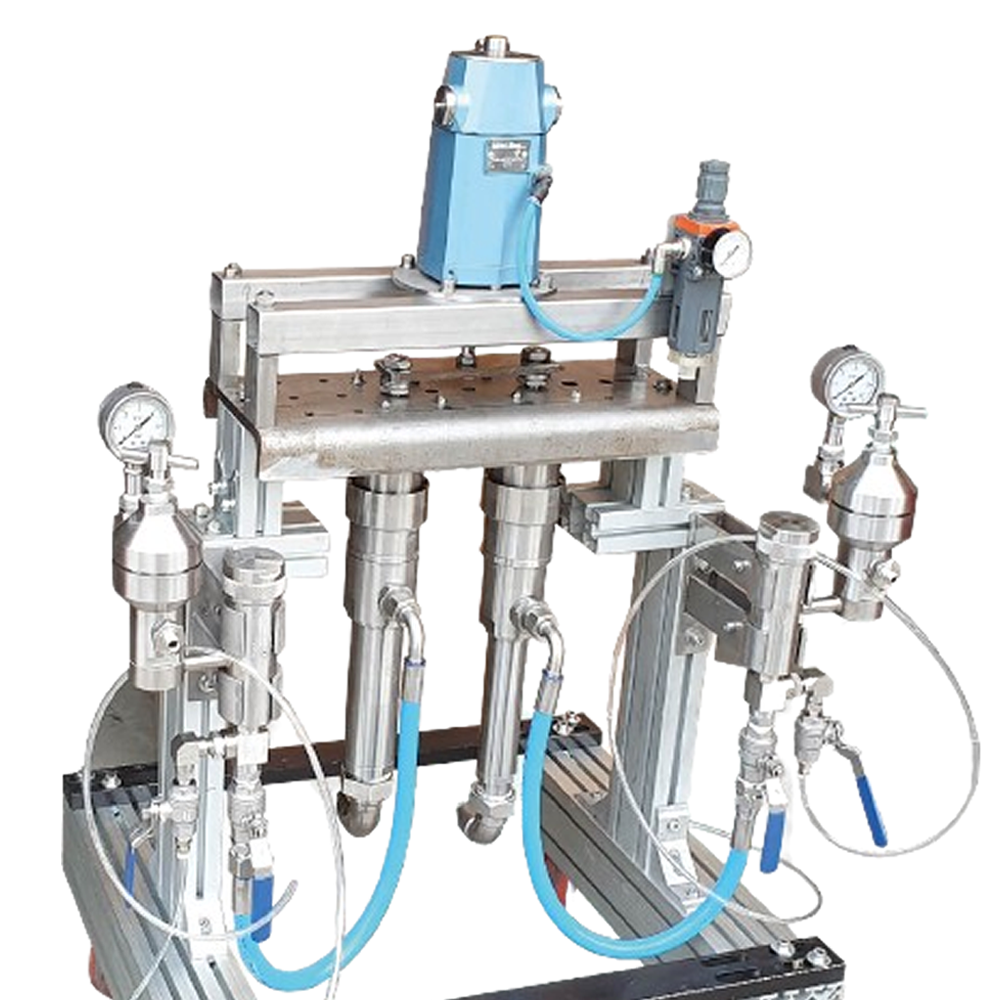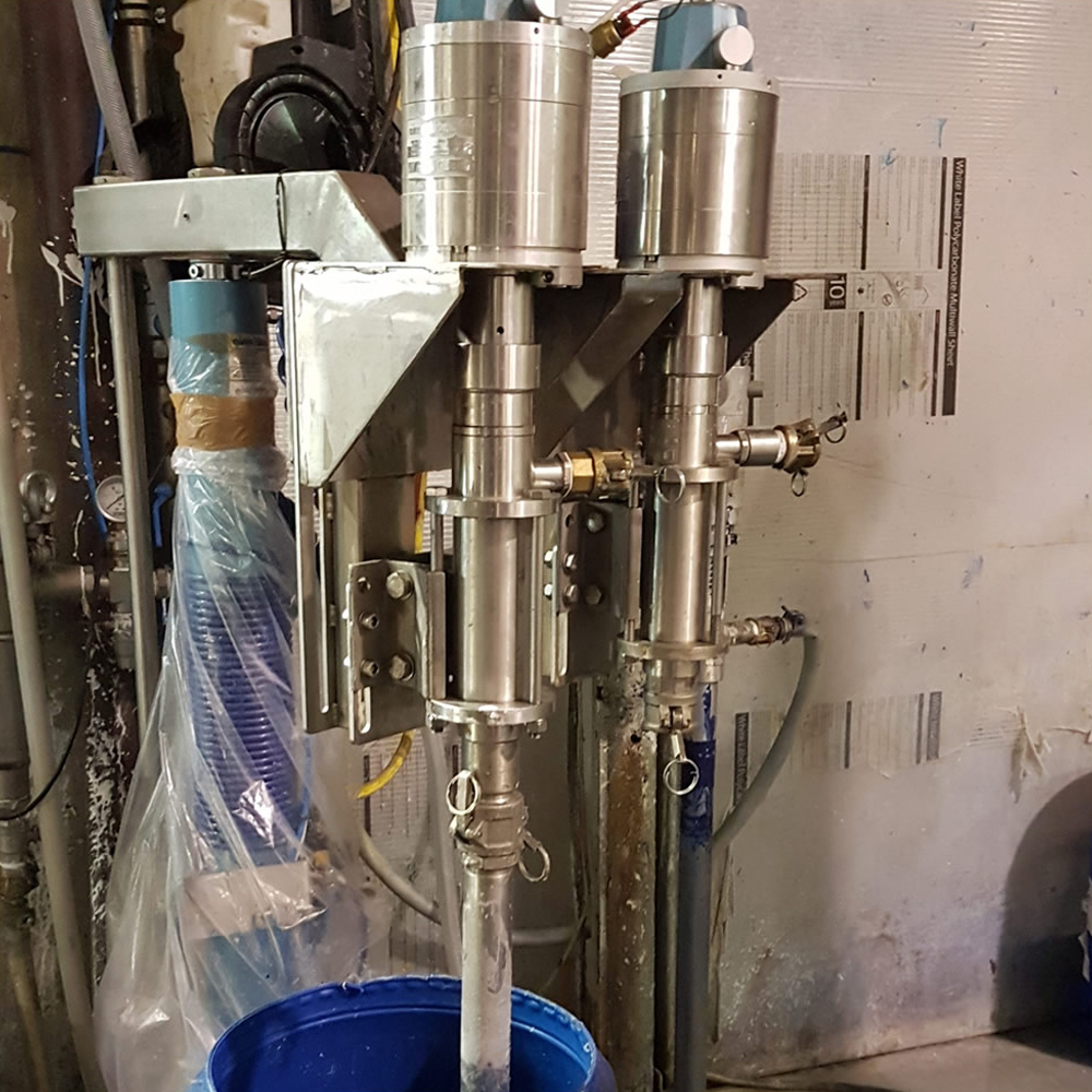 Il cablaggio di motori con sezioni pompanti, permette la conversione della potenza pneumatica in “potenza idraulica” e genera una gamma completa di pompe a motore pneumatico, adibite al trasferimento di prodotti fluido/densi.
